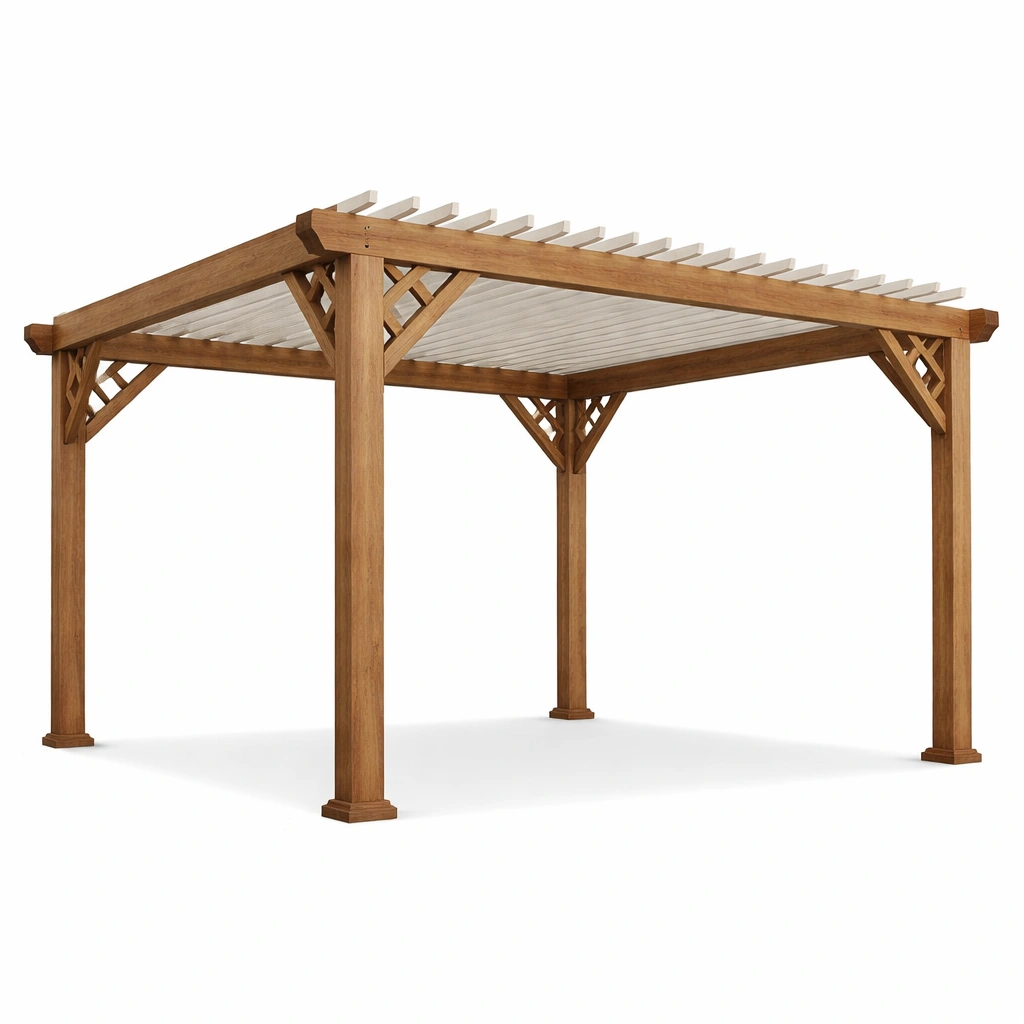 Especificaciones: La estructura incluye soporte de madera y techo de lamas para proporcionar sombra.